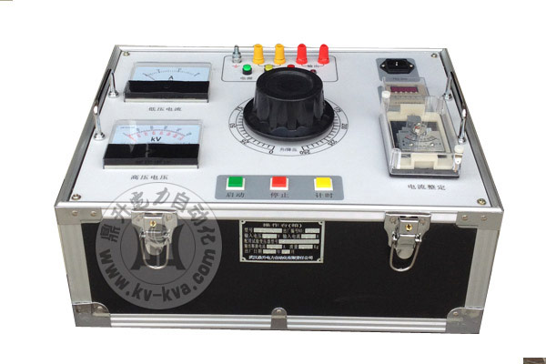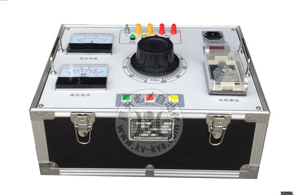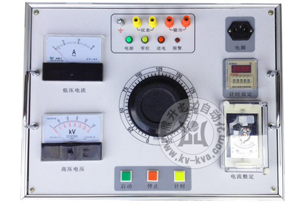 說明XC試驗變壓器控制箱及附件圖片包括:試驗變壓器控制箱機箱、試驗變壓器控制箱操作面板、廠家銘牌、電流電壓表、接線柱、升降壓控制按鈕、計時設定區、電流整定區