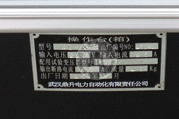 說明XC試驗變壓器控制箱圖片包括:試驗變壓器控制機箱、試驗變壓器控制箱操作面板、試驗變壓器控制箱銘牌