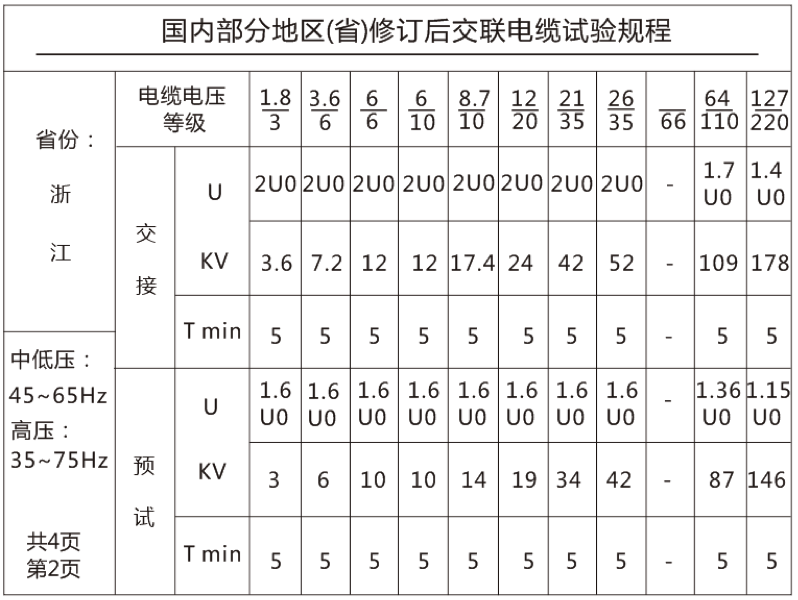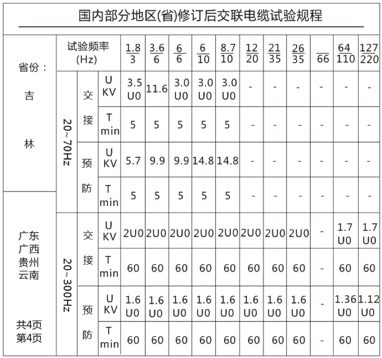 絕緣預(yù)防性試驗是保證電力系統(tǒng)設(shè)備可靠運行的重要手段,交流耐壓試驗是檢驗設(shè)備絕緣狀況的重要手段,也是絕緣預(yù)防性試驗的重要類容,目前主流的電纜交流耐壓設(shè)備有變頻串聯(lián)諧振裝置,下文我們列舉國內(nèi)相關(guān)省份對XLPE交聯(lián)聚乙烯電纜的耐壓試驗規(guī)程。